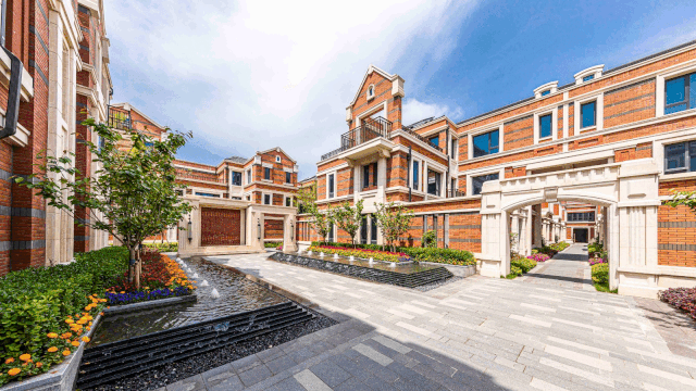中海閱麓山采用石庫(kù)門海派的建筑風(fēng)格,外立面采用石材、面磚、真石漆等材質(zhì),外觀呈紅褐色,打造最純正的老上海石庫(kù)門里弄建筑風(fēng)格。