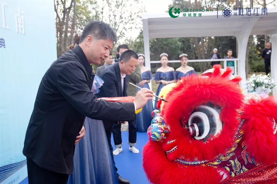 精彩的舞獅表演,獻(xiàn)禮吐瑞,妙筆點(diǎn)睛之后,綠城·桂語江南項(xiàng)目展廳正式開放,榮耀面世!