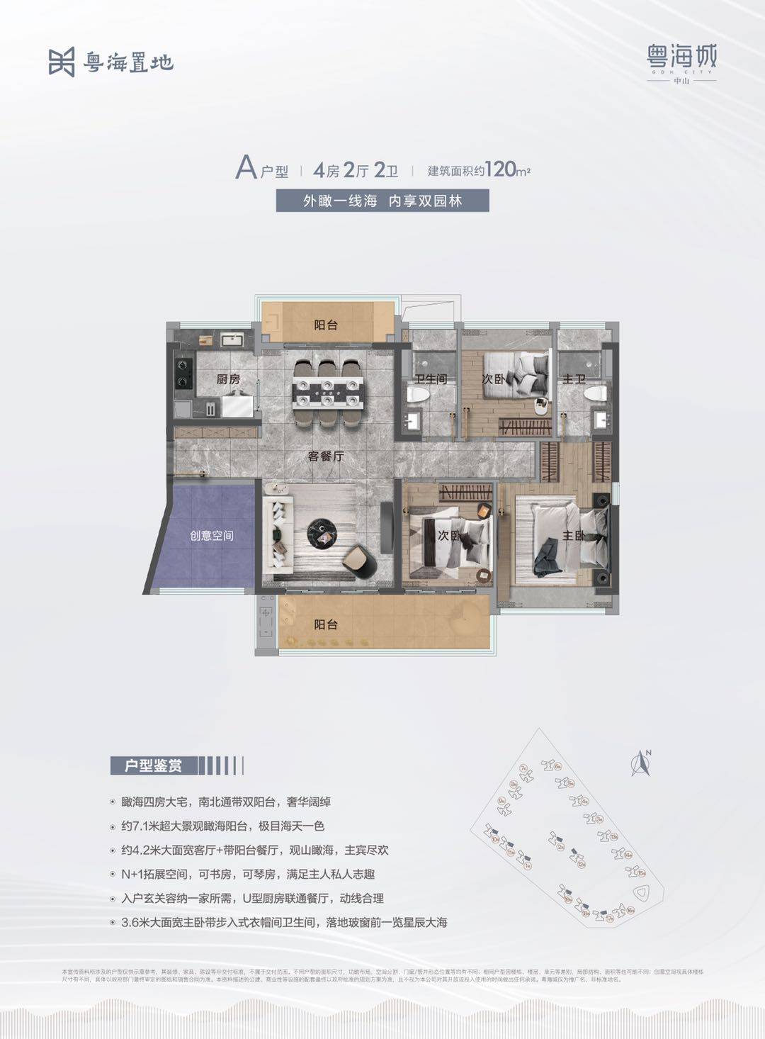 A戶(hù)型:建面約120m² 4房2廳2衛(wèi)