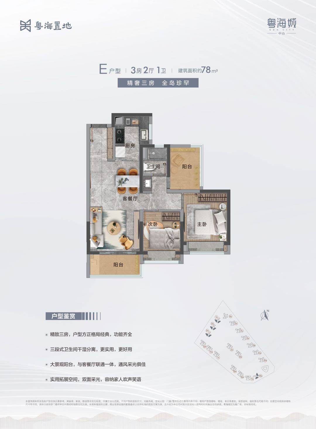 E戶(hù)型:建面約78m² 3房2廳1衛(wèi)