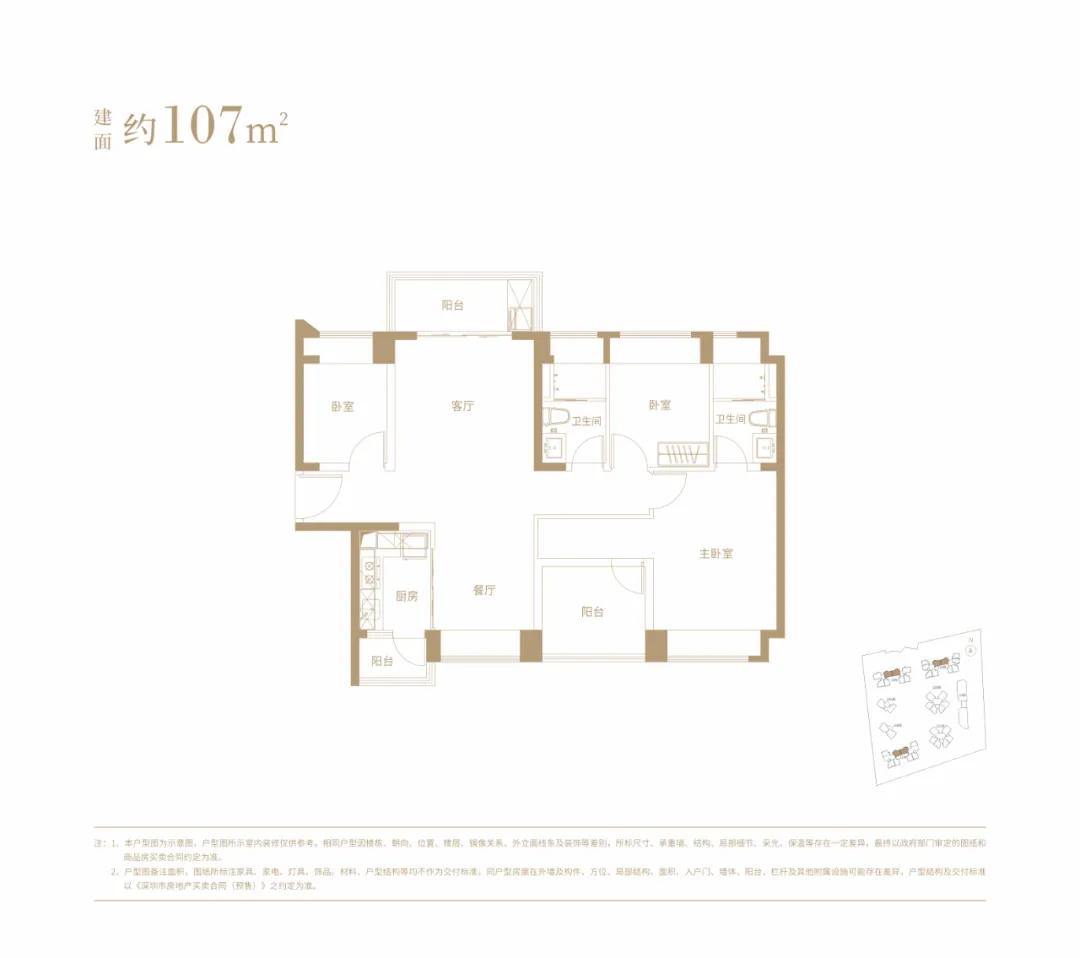 建面約107㎡的戶型整體格局方正,3房2廳2衛(wèi)的奢闊戶型,還有一個超大陽臺,動靜分區(qū)合理,南北通透,通風采光更佳。
