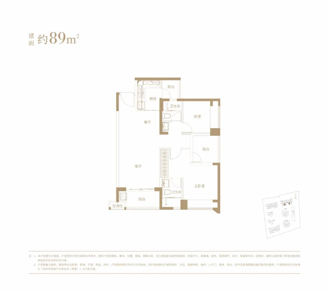 建面約89㎡的戶型整體格局方正,2房2廳2衛(wèi),除了兩個生活陽臺,還有一個超大陽臺,可做多功能室,功能分區(qū)合理,其中主臥做套間設計,私密性更強