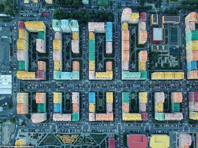 令人驚嘆的航拍照片顯示,烏克蘭一個五彩斑斕的小鎮(zhèn)就像現(xiàn)實生活中的樂高城市。