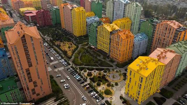 英國《每日郵報》5日報道,這個“舒適小鎮(zhèn)”,位于烏克蘭首都基輔。建筑師將每個低層公寓樓涂成不同的顏色,創(chuàng)造出一個由藍色、綠色、黃色、紅色和橙紅色組成的彩虹小鎮(zhèn)。