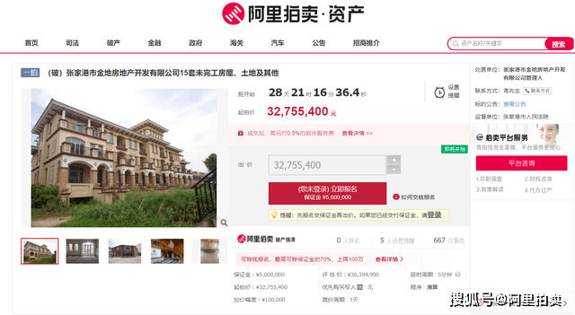 張家港金地房地產公司破產,名下15套未完工聯(lián)排房將3275萬起拍
