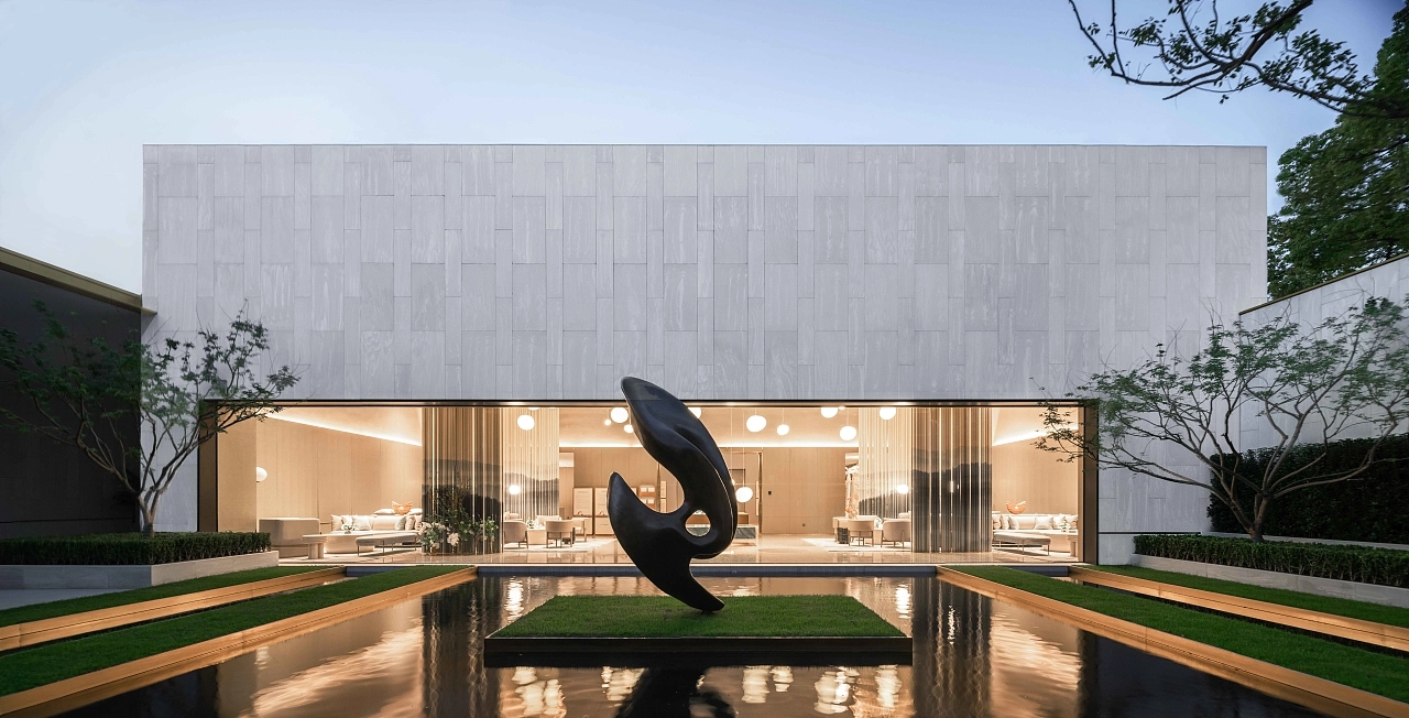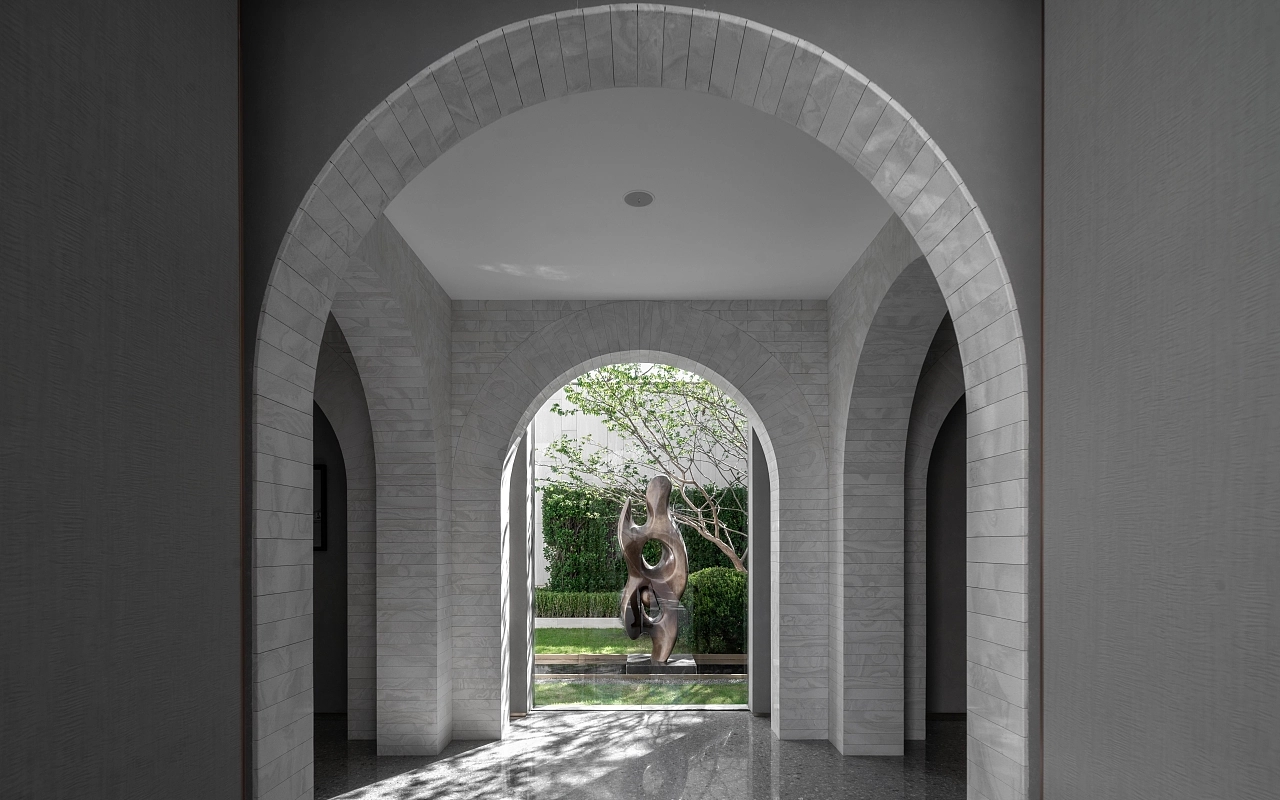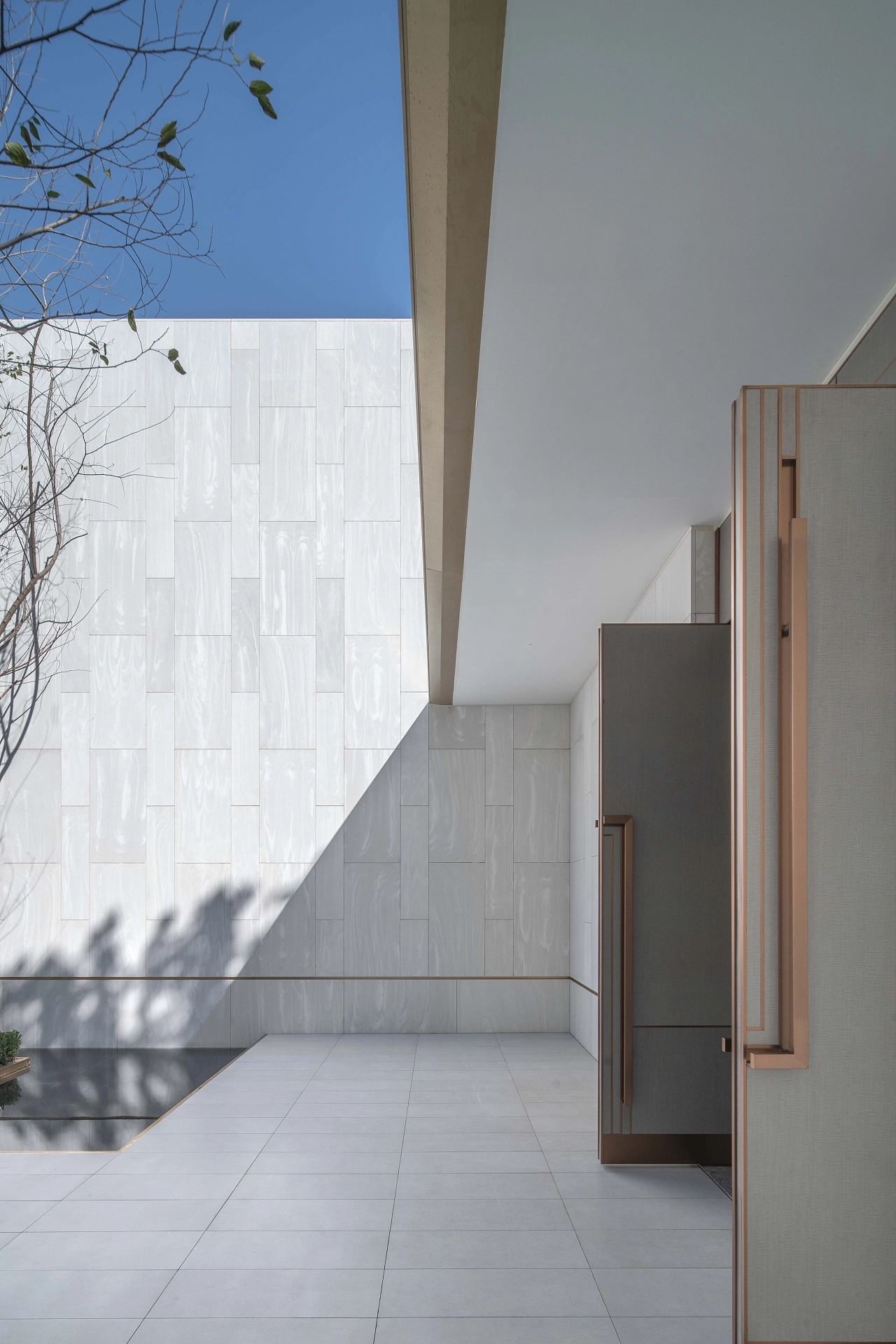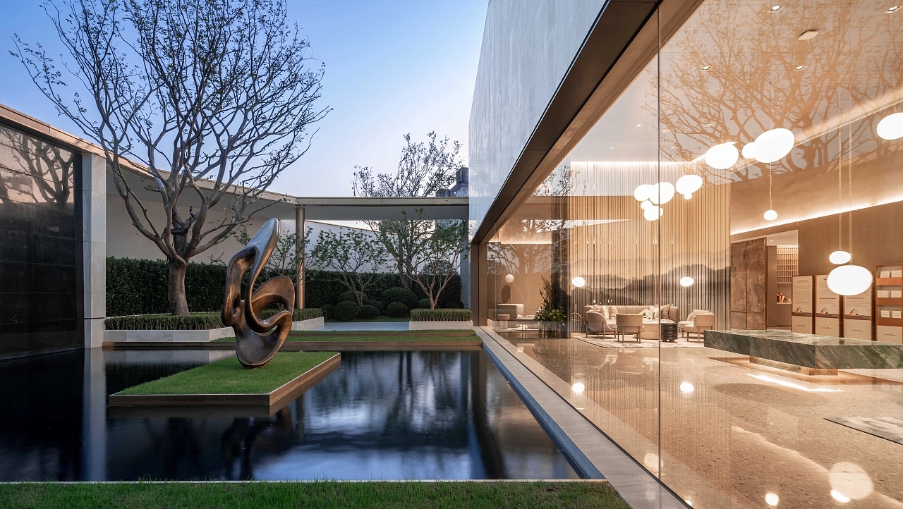我們不僅從體驗者角度出發(fā),同時密切關(guān)注城市自然因子,考量室內(nèi)外景觀視線的對景關(guān)系。在設(shè)計之初便堅持將建筑、室內(nèi)、景觀一體化的理念,“融萬物于此境”。