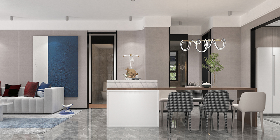 寶億萊軟裝案例:山東淄博青藍(lán)府B戶(hù)型135平現(xiàn)代樣板房