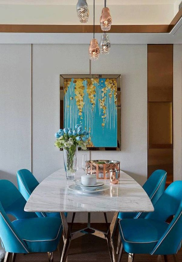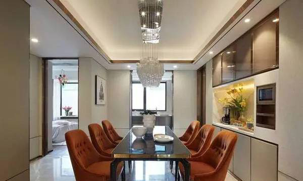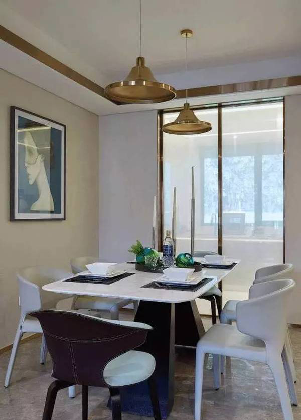 餐廳作為聚會(huì)的公共區(qū)域,一場饕餮私宴即將打開味蕾。室內(nèi)每一處室內(nèi)動(dòng)線都經(jīng)過精心的規(guī)劃,金屬裝飾讓餐廳更為摩登和時(shí)尚。