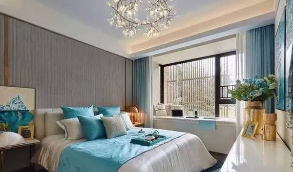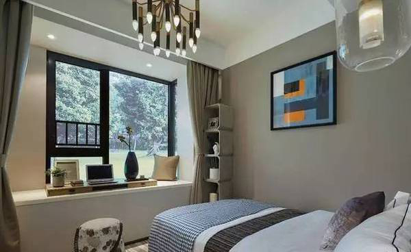 臥室是客廳風(fēng)格的延續(xù),彌漫著輕奢韻味又帶有東方色彩。飄窗為整個(gè)空間設(shè)計(jì)增色加分,除了具備休憩的基本功能,這里還可以是賞景茶座,亦或是一隅輕松愜意的閱讀空間。