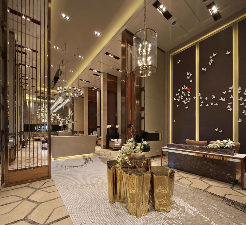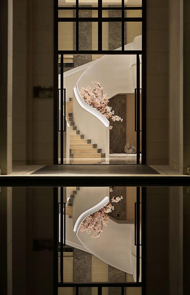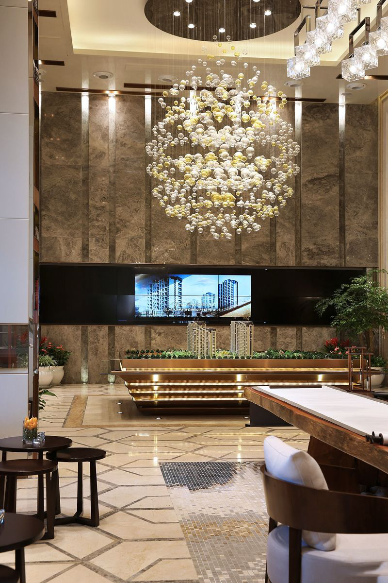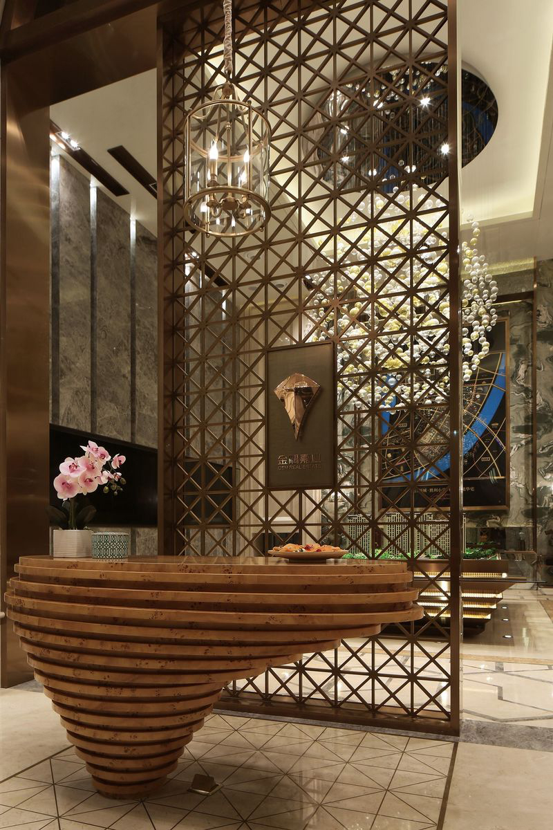 售樓部的設(shè)計(jì)風(fēng)格注重品質(zhì)感,沒有拘泥于市場上傳統(tǒng)意義的室內(nèi)風(fēng)格,而是從容地揉合了不同的元素,整體呈現(xiàn)出自由混搭的折衷主義風(fēng)格。目光所及之處,精彩靈動(dòng)而來。漫步在高挑的歐式圓拱門型通道,如同進(jìn)入知識(shí)與智慧的殿堂接受神圣之洗禮,充滿了高貴與莊嚴(yán)感;通道地磚的圖案與頂天立地的鏤空金屬玄關(guān)遙呼相應(yīng),在光與影的交織下融為一體,幻似一條通往智慧天堂之路。大面積煙雨灰的背景墻渲染出中國寫意書畫之美,配合古風(fēng)十足的茶具、書畫和瓷器等鑒賞品,勾勒出一派典雅的中國民族風(fēng)。