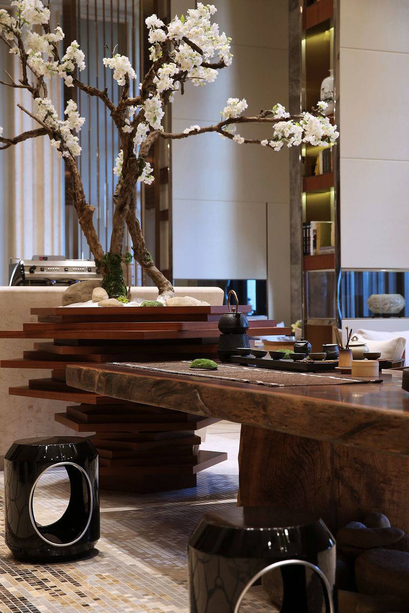 特別值得一提的是運(yùn)用了傳統(tǒng)與現(xiàn)代相結(jié)合的手法打造的鑒賞區(qū)。現(xiàn)代風(fēng)的沙發(fā),可以安放疲憊的身軀,令人舒適放松;純原木打造出古樸風(fēng)的品茶與才藝展示區(qū)。才藝展示區(qū)由中國書房之文房四寶坐鎮(zhèn),高雅人士雅集于此正是切磋技藝之絕佳之地。在侍側(cè)品茶區(qū)煮一壺秋水,品一杯春茶,敘一懷夏情,默默安享時(shí)光靜好!一個(gè)優(yōu)秀的鑒賞區(qū)讓你品味的是一種生活和體驗(yàn)!