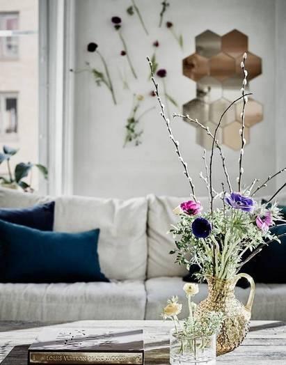 客廳等重要空間,要重點打造視覺集中點。這個點非常重要,視覺點擺設的好壞直接影響到整個軟裝工程的效果。圖中這瓶花束就屬于點睛之筆,跳脫于空間,成為焦點所在。