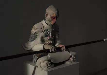 圖中悟空的雕塑,考慮的不僅僅是空間裝飾性,更是要傳達一種文化。不管是工藝品,還是裝飾畫,就算是一種簡單的紋理,也可以引申到某種文化。(圖片選自《迷·藏-孫悟空》丨中國藝術家王瑞琳雕塑作品)
