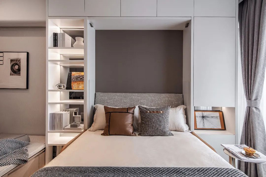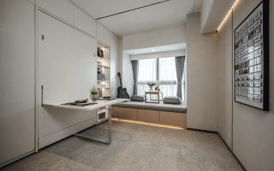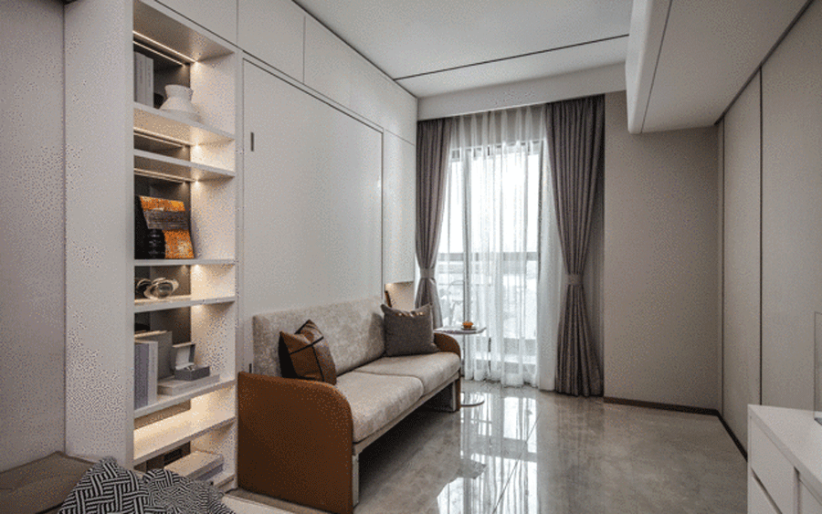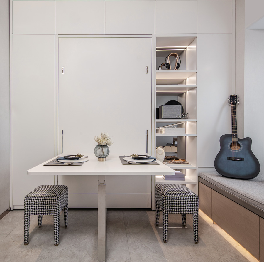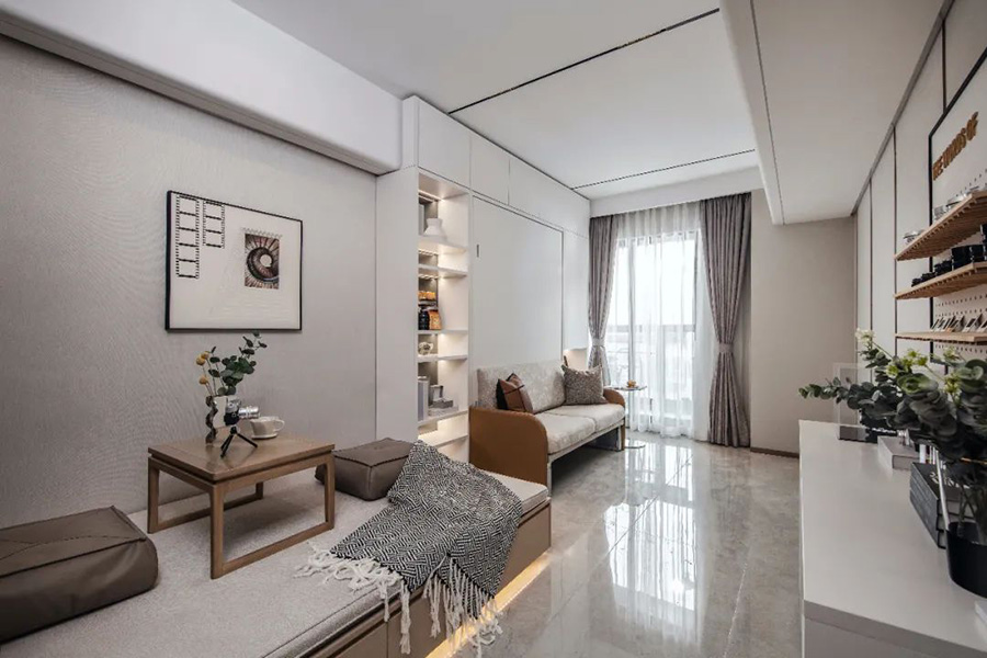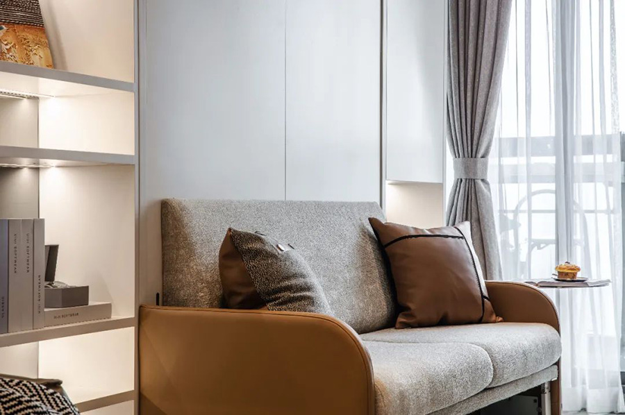 變型家具增加了生活的舒適度,白天、晚上兩種生活場景隨時切換,營造出一種精致舒適的多功能家居。