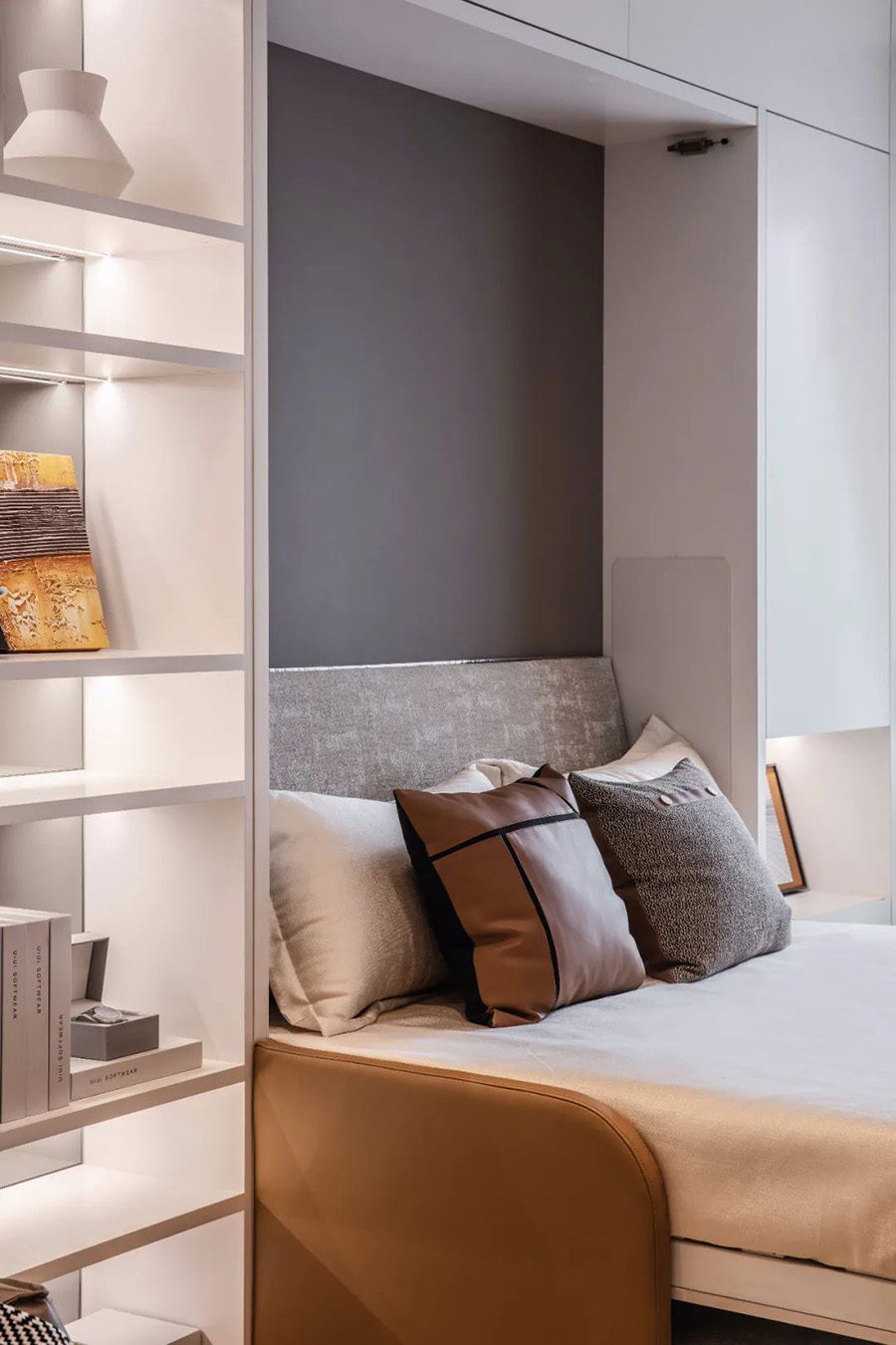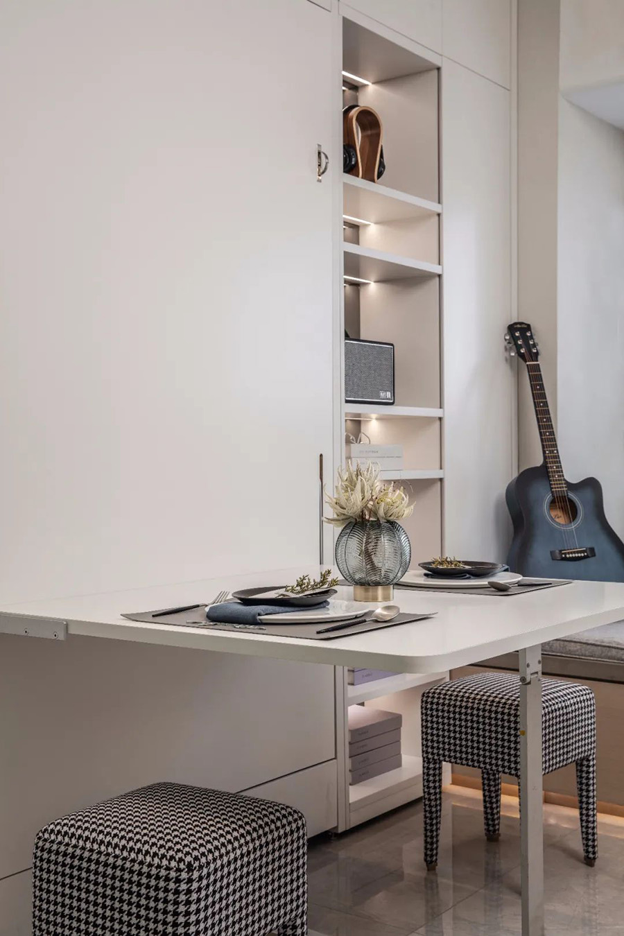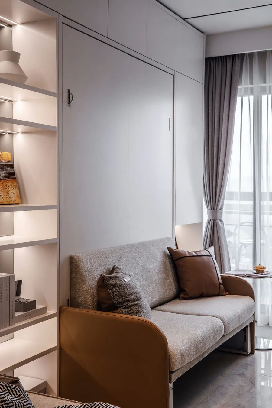 變型家具增加了生活的舒適度,白天、晚上兩種生活場景隨時切換,營造出一種精致舒適的多功能家居。