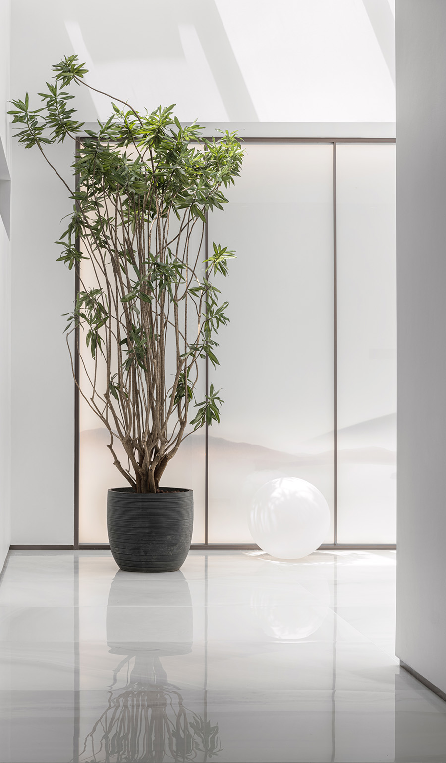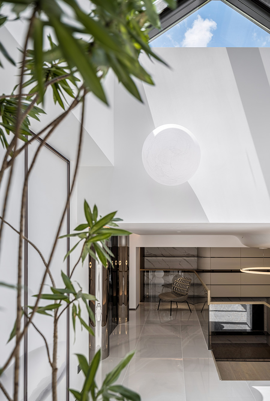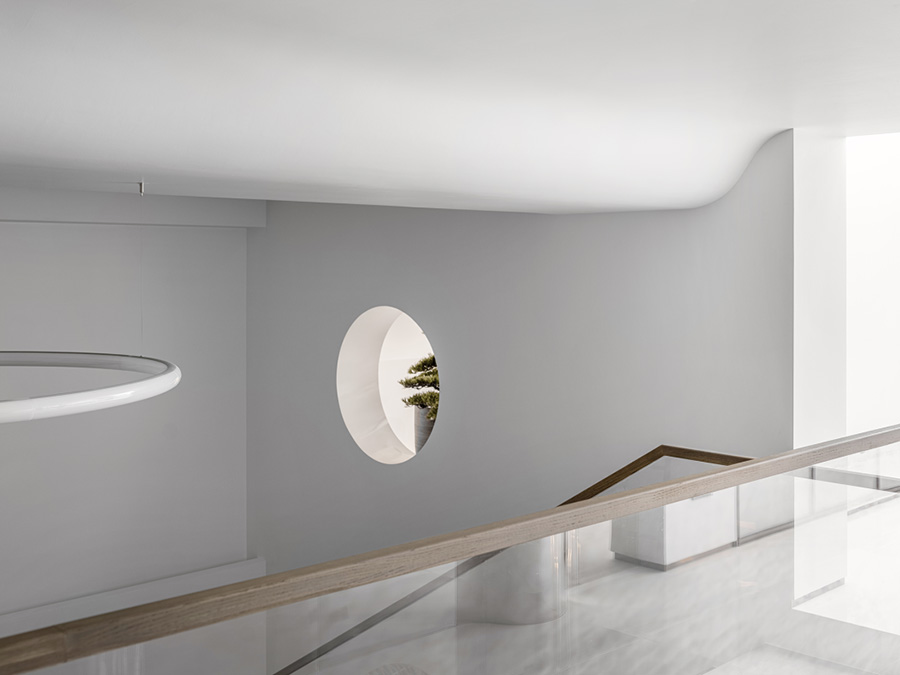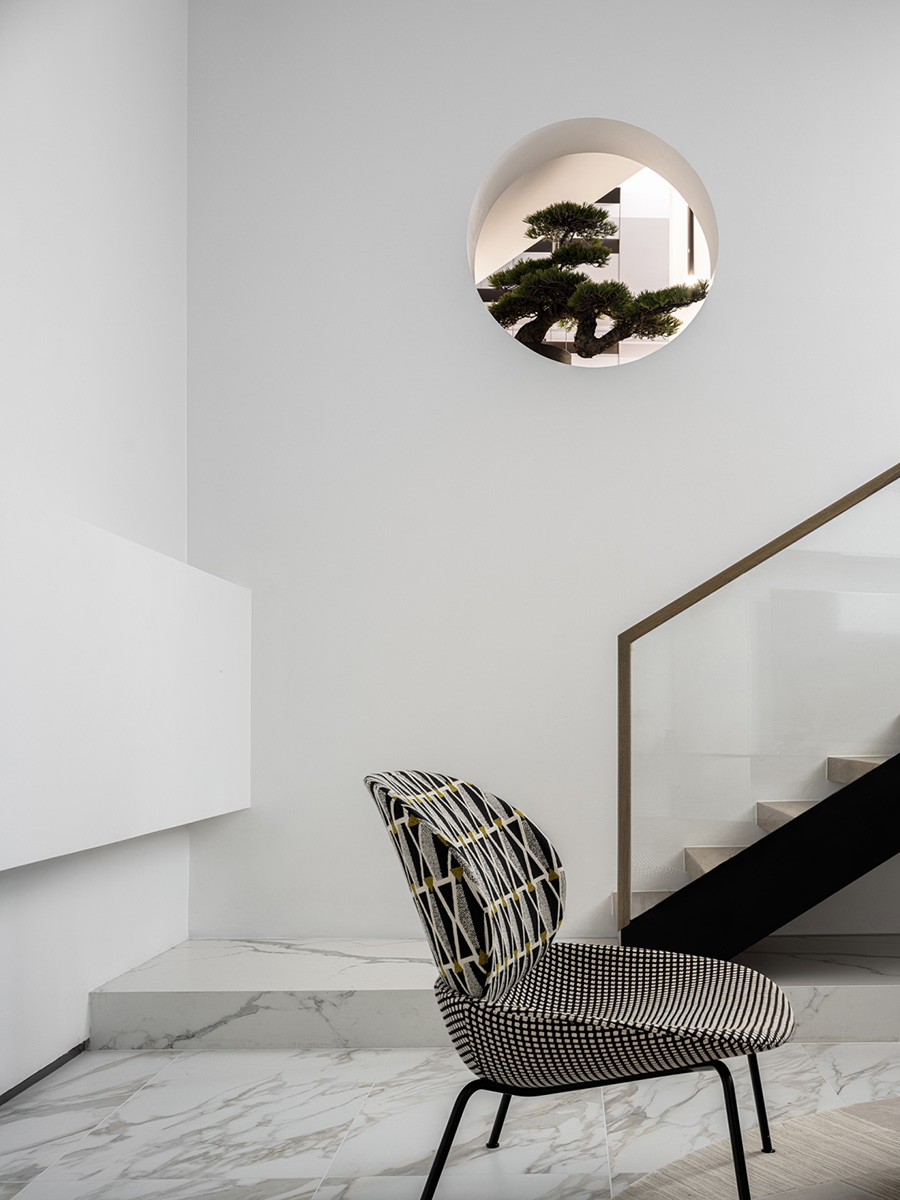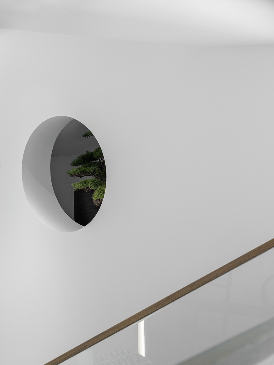地窖開啟三角天窗,引入自然借景和光影次序,利用自然光線的饋贈,將自然與空間鏡像成趣,營造出月影婆娑,皓月當空的意境。