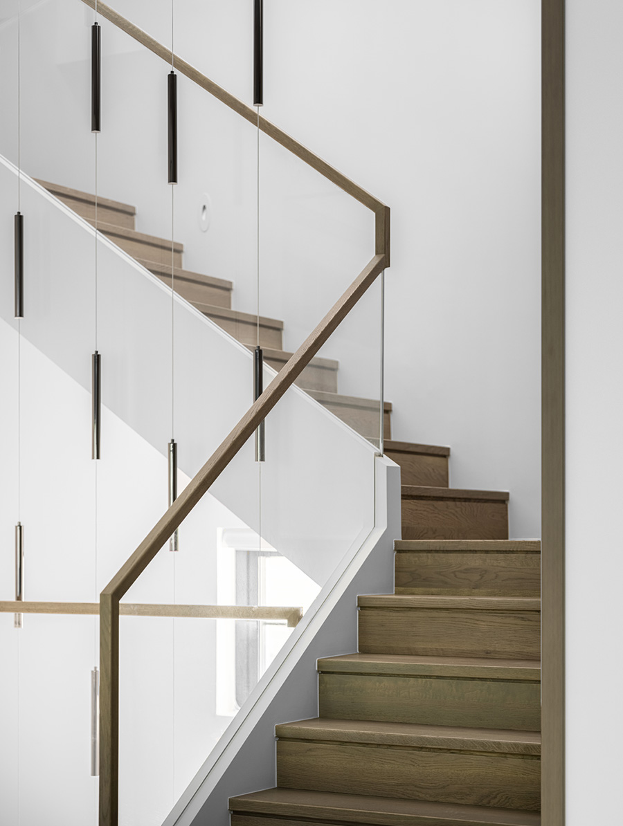 設計者考慮保留原有建筑窗子的位置,巧妙地運用木飾面分割,利用格子透光不透景,營造出靜謐空間。