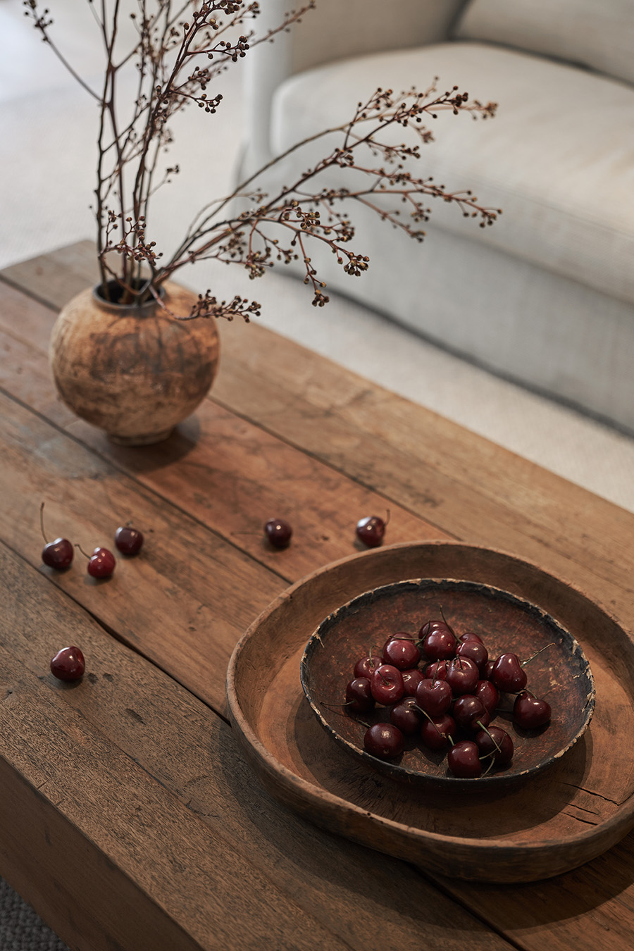 大面積淺調(diào)的墻壁為這種情況奠定了簡單笨拙的基調(diào),因為它的簡單可以容納一切,就像門廊來源的設(shè)置:門邊的鏡子,鏡子里的木椅,地球色的地墊,都體現(xiàn)了事物的真美。這種簡單使玄關(guān)與室內(nèi)外的隔離和銜接過渡自然而恰當。值得一提的是,這把小木椅承載著主人母親的關(guān)心和思念。它從家鄉(xiāng)帶來,放在房子里。每次看到都會感受到熟悉的安全感。
