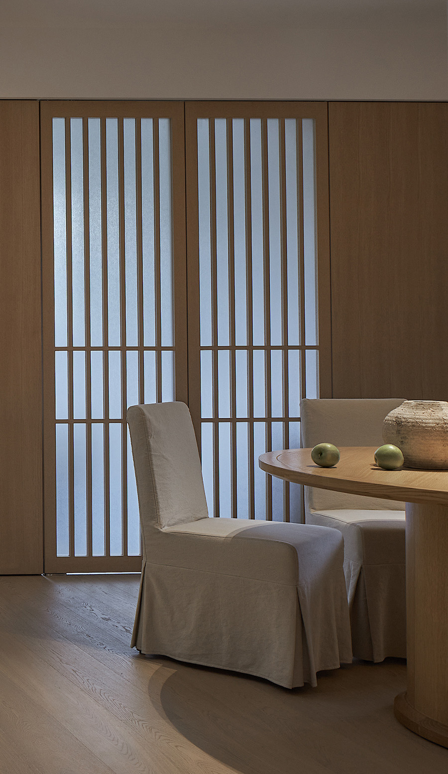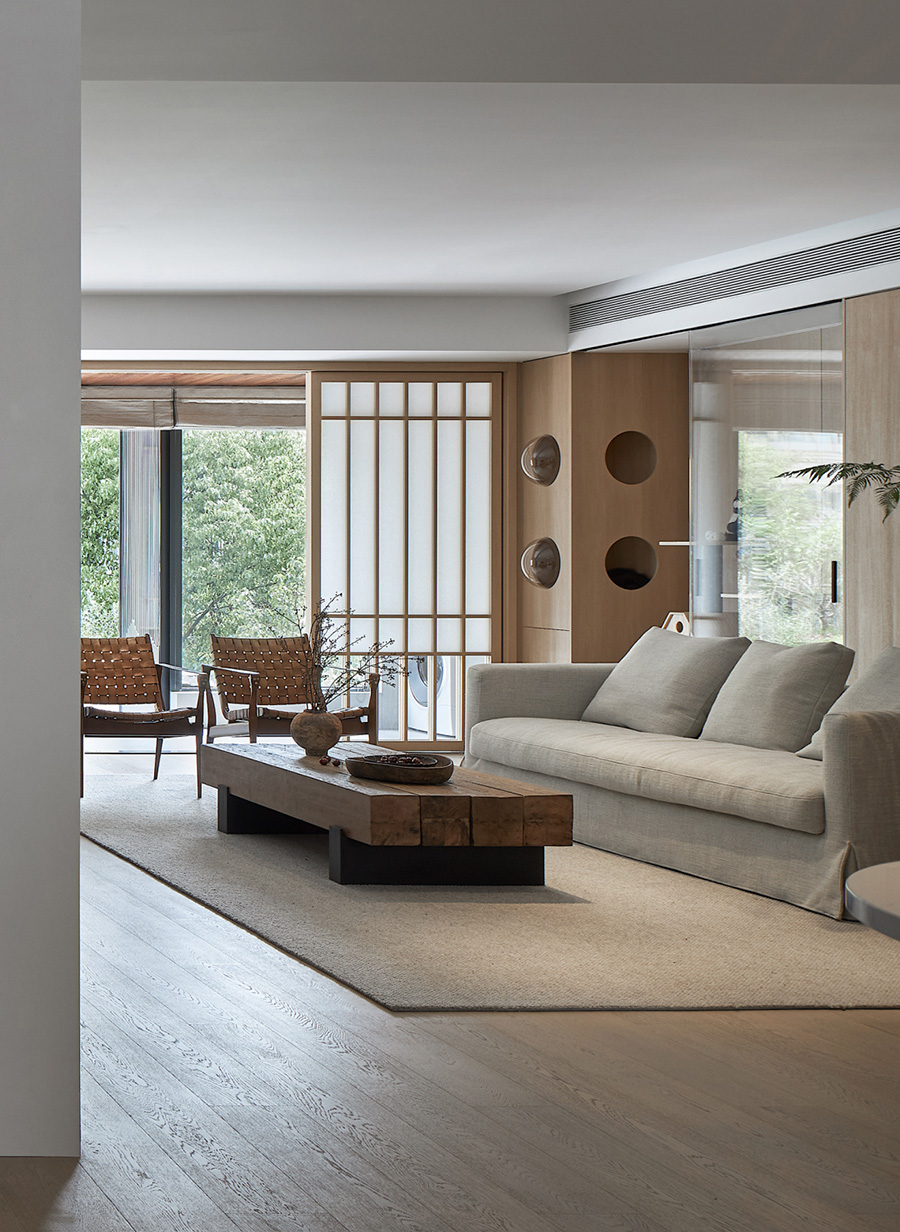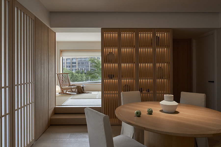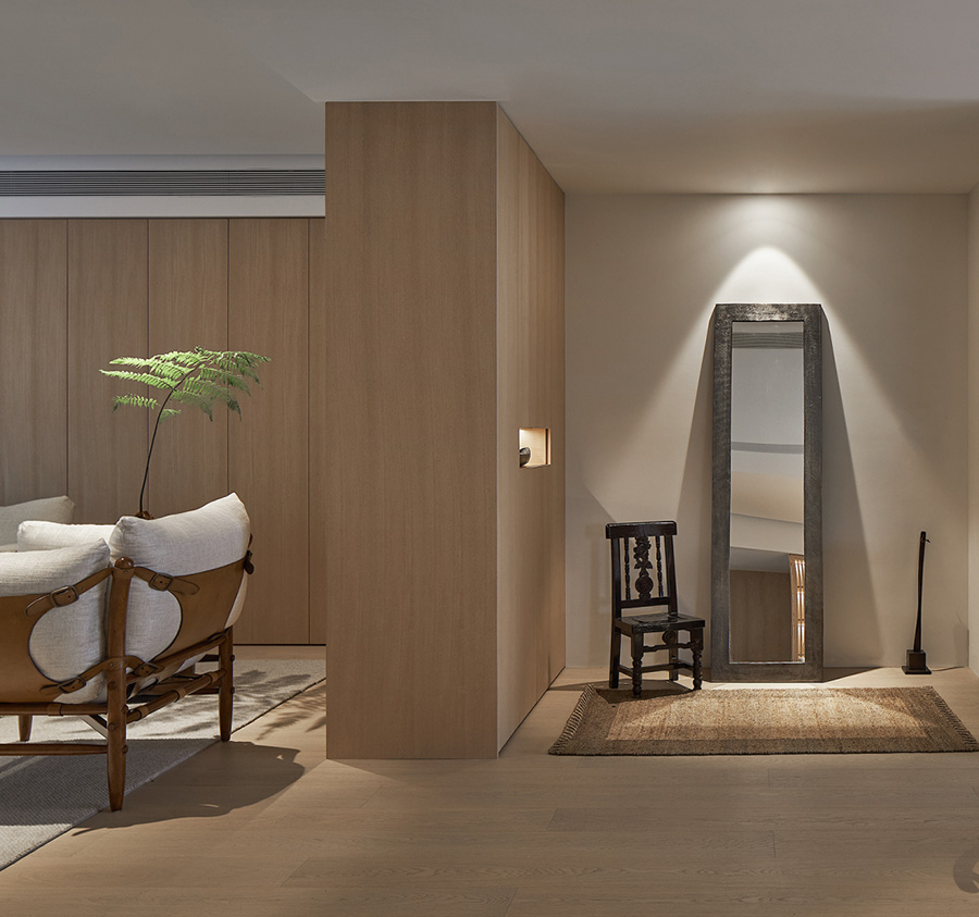 與古剎對山林的影響不同,鬧中取靜更像是冥想禪門對人群的影響。本案以存真去奢的審美內(nèi)核,打開了這樣一扇靜心的門,讓人享受心外無他的寧靜。家在這里,何必遠方?
