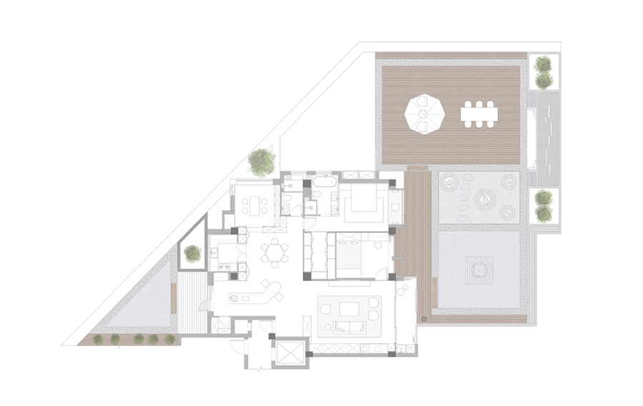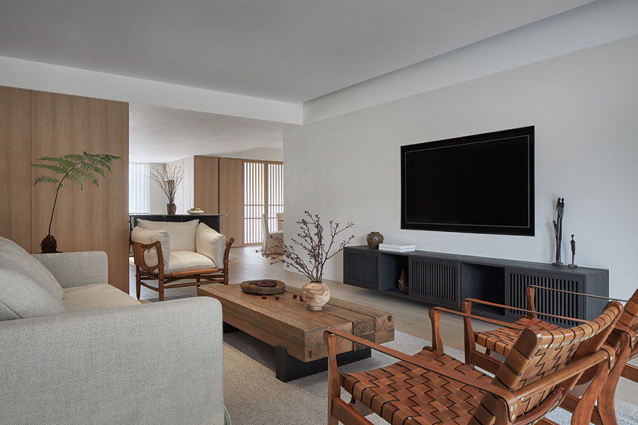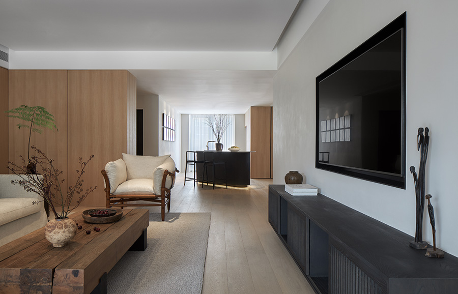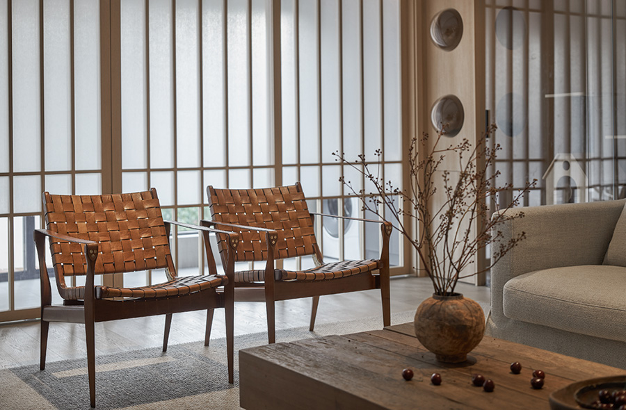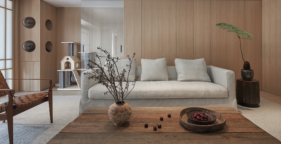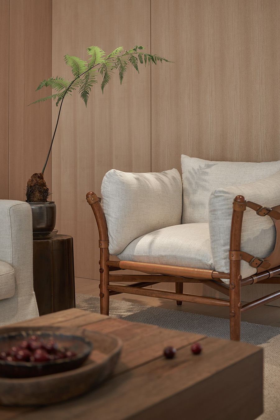 與古剎對山林的影響不同,鬧中取靜更像是冥想禪門對人群的影響。本案以存真去奢的審美內(nèi)核,打開了這樣一扇靜心的門,讓人享受心外無他的寧靜。家在這里,何必遠方?