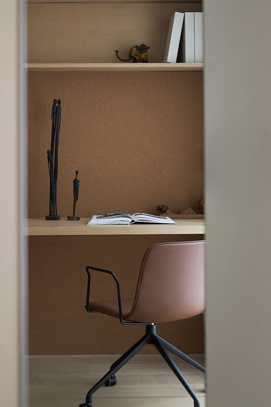 書房藏在門后,將窗外的風景引入室內(nèi),在坐臥之間欣賞外面的風景,享受無他之靜