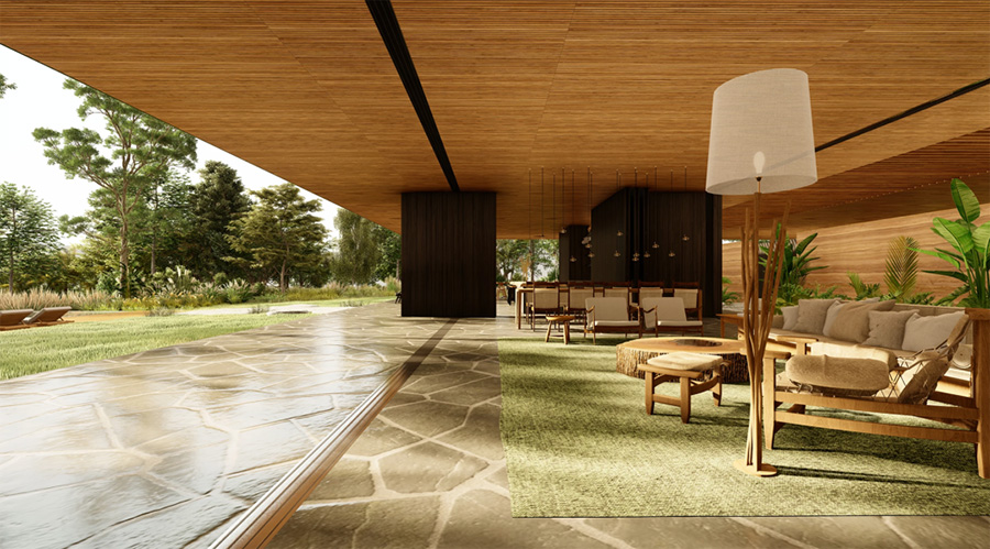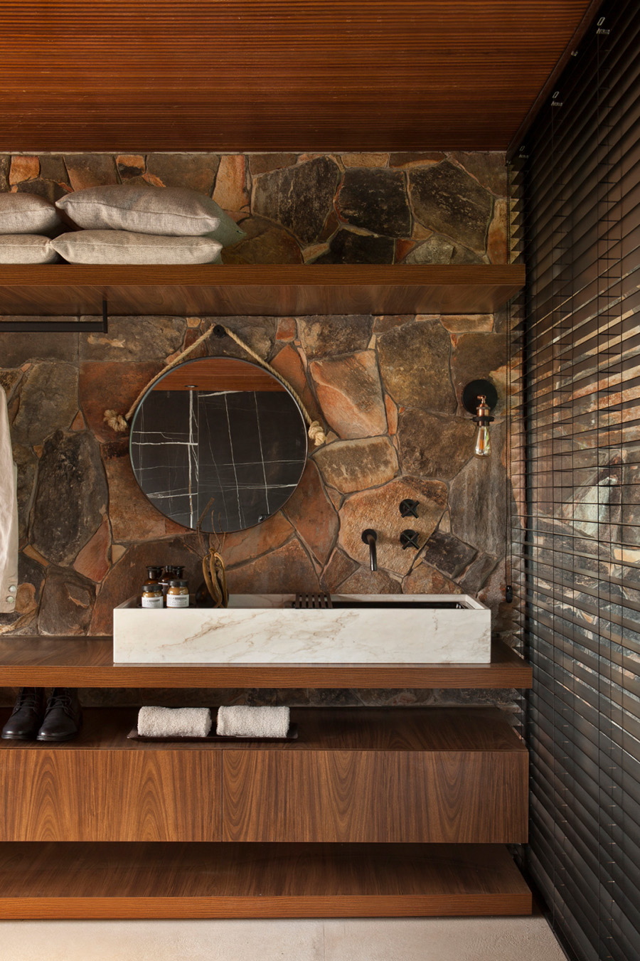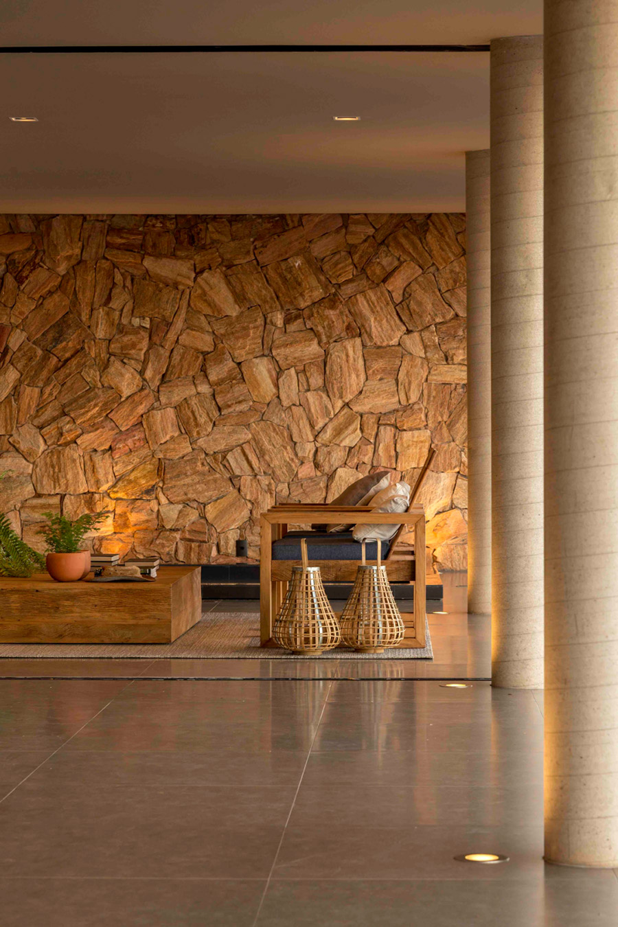 內(nèi)部軟裝由巴西著名設(shè)計師Jader Almeida、Paulo Alves和奧地利設(shè)計師Martin Eisler等設(shè)計,以及未經(jīng)雕琢的石墩,創(chuàng)造出自然質(zhì)樸與精致生活的巧妙融合。