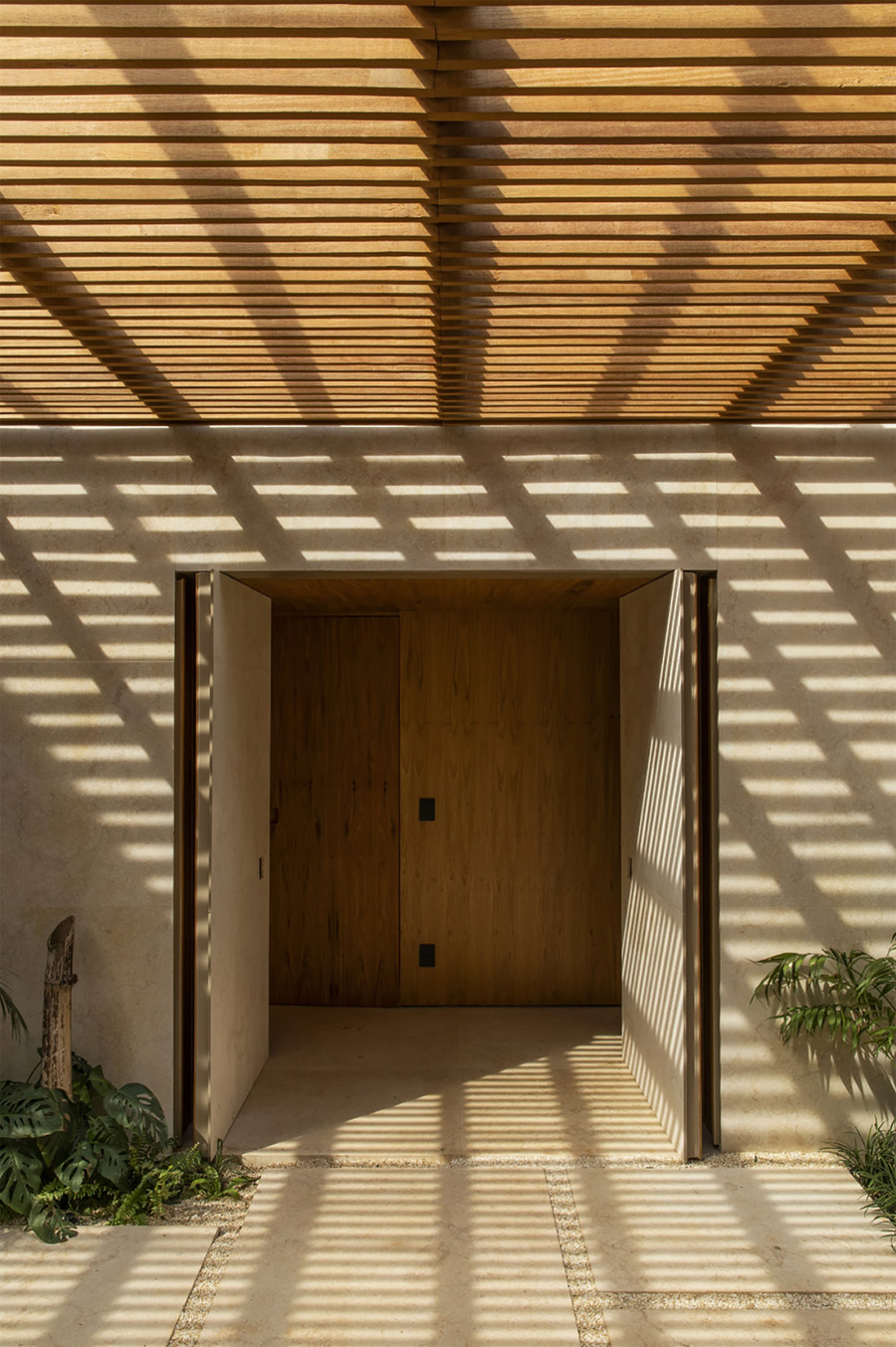 它是一座純粹的極簡建筑,可自然開啟的旋轉(zhuǎn)門,構(gòu)成建筑中最重要的開敞元素,也創(chuàng)造出朦朧的建筑藝術(shù)。在“大地色”的基調(diào)下,融合了木材等溫潤、天然石材的粗獷與質(zhì)樸,混凝土的莊嚴,野性十足的景觀設(shè)計等元素,營造建筑與自然的和諧美。