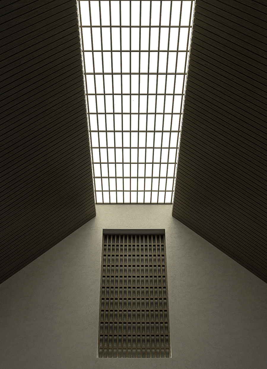 兩個洞口劃分出山墻的層次,木柵欄嵌入其中,模糊不清中勾勒出虛空之光。