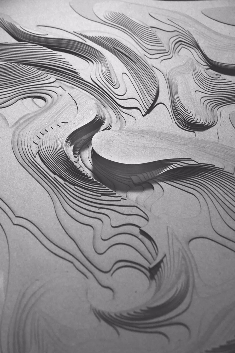 「水盡林中,便得一山,山有一口,如有光一般?!褂伤山嫌雾樍鞫?,來到一片豁然開朗的世外桃源,整個空間充滿了尺度與魔幻,幾個格子金屬屏風(fēng)高高聳立,猶如松江里的萬畝良田,一派富饒的景象油然而生。身旁竟有兩個神秘的洞口,稍作停留,便迫不及待地探索里面的神秘世界啦!