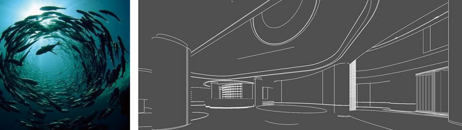 整個建筑融入了“在水一方”的理念,以水的靈動和河湖的自然形態(tài)汲取靈感,精心布置空間。自然+尋夢設(shè)計主線,通過流動的空間布局引導(dǎo)年輕人嘗試打破空間界限和現(xiàn)狀,去感知設(shè)計能夠?qū)ι钭龀龈淖儭?/span>