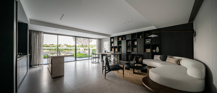 房屋在這里是情感的載體,也是生活趣味的凝集。現(xiàn)代感下的東方氣韻濃縮為獨(dú)特的視角,以富有質(zhì)感的表現(xiàn)手法重塑空間。在解決問題時(shí),設(shè)計(jì)師希望能多一些角度和方法。“武術(shù)之城”和“陶瓷之都”項(xiàng)目所在地的文化背景下,現(xiàn)代空間的幾何化表現(xiàn)略顯生硬,仿佛一段故事,總少了一點(diǎn)因緣。