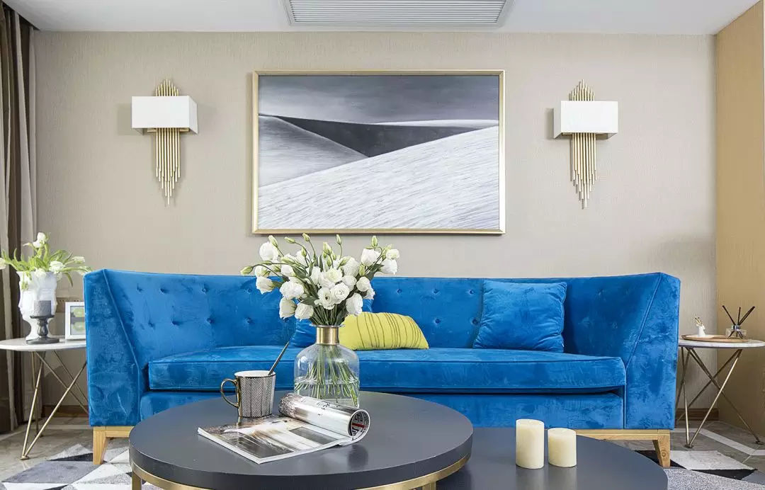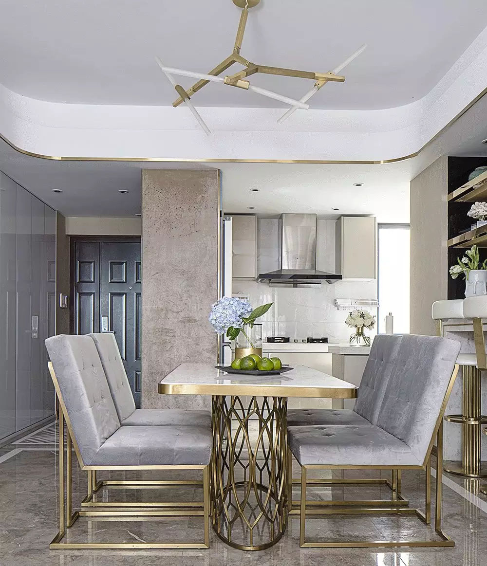 在以咖、灰、金為主色調(diào)的空間氛圍中,亮眼的撞色搭配更有利于營造出一種活潑輕快的氛圍,和諧又有層次感,充分滿足了輕奢族對于品質(zhì)居住的完美想象。