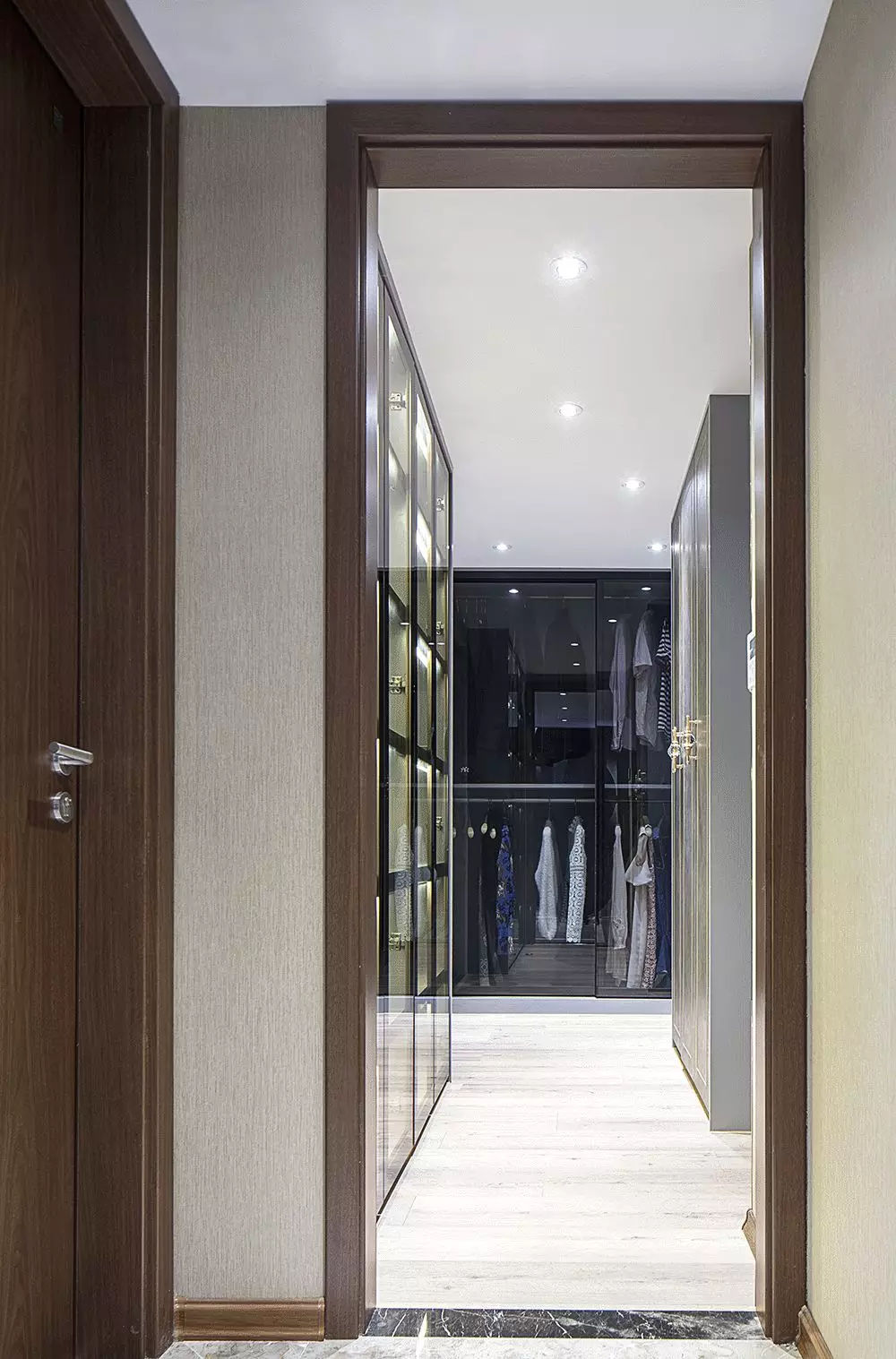 主臥氣質(zhì)沉靜、優(yōu)雅,還通過鞋帽柜和衣柜的設(shè)置,引出了一條通往步入式衣帽間的連貫動(dòng)線,整個(gè)設(shè)計(jì)一氣呵成,讓空間回歸到屬性的本身。