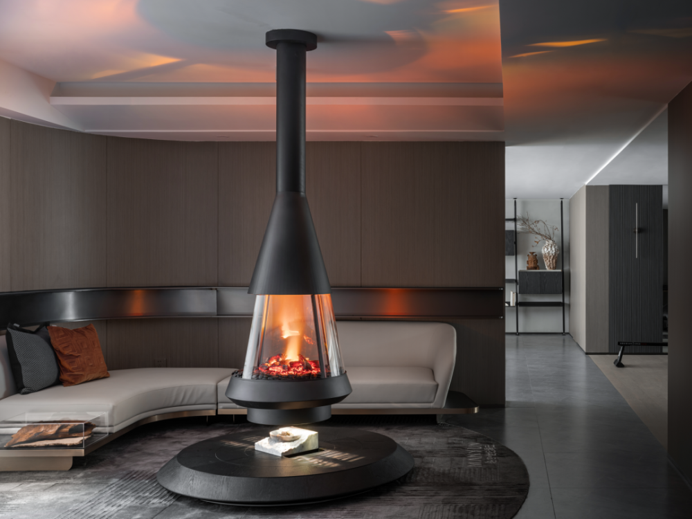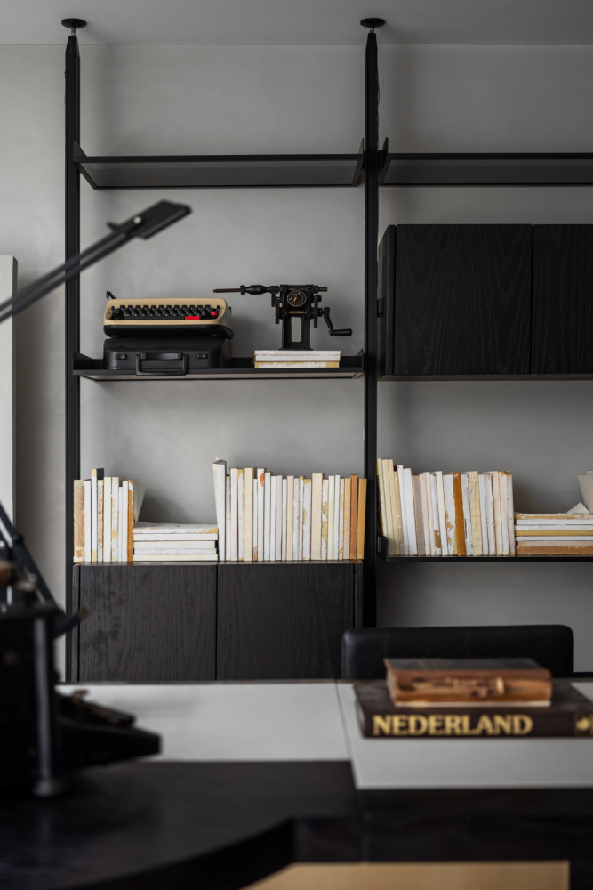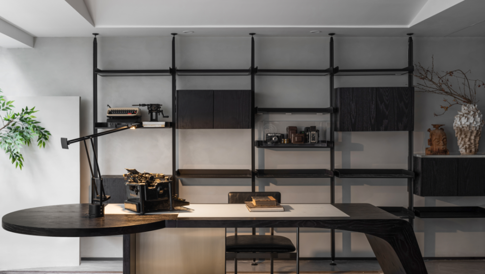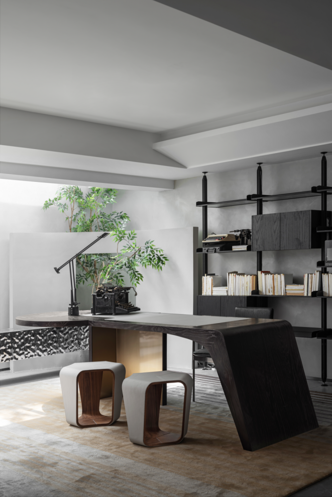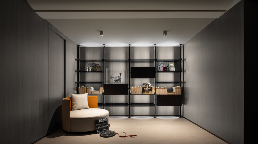 在負(fù)一層的公共活動區(qū),老式打字機、電影膠片、老式電影放映機等眾多老物件,以藝術(shù)收藏的方式進(jìn)入空間細(xì)節(jié);帶有古典意蘊的書案和置于中心位置的火塘,則以傳統(tǒng)的形態(tài)參與進(jìn)現(xiàn)代生活。位于空間最內(nèi)側(cè)采光天井,使得陽光洗墻而下,現(xiàn)在時與過去時交融,新的感知被某種瞬時性所激活。