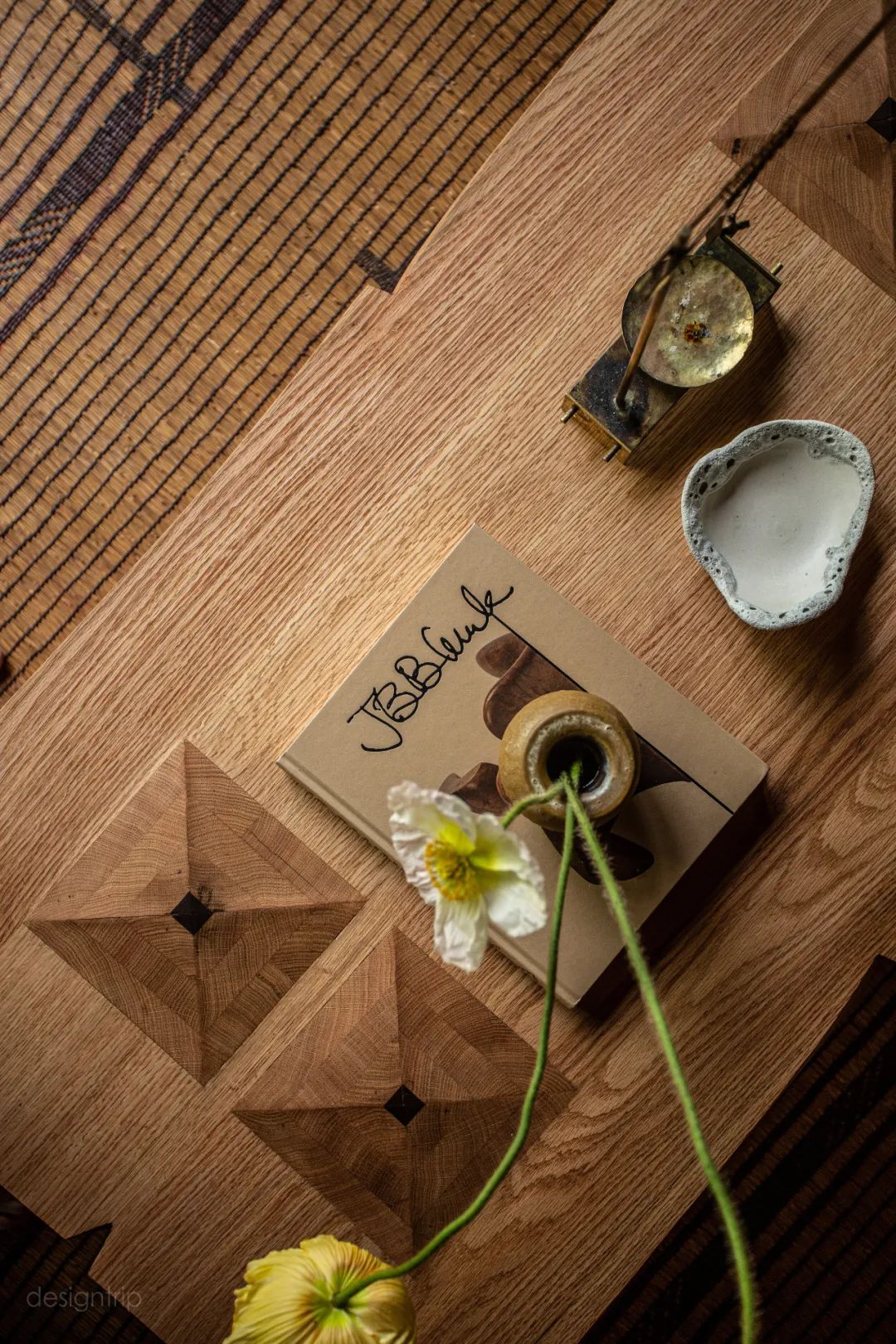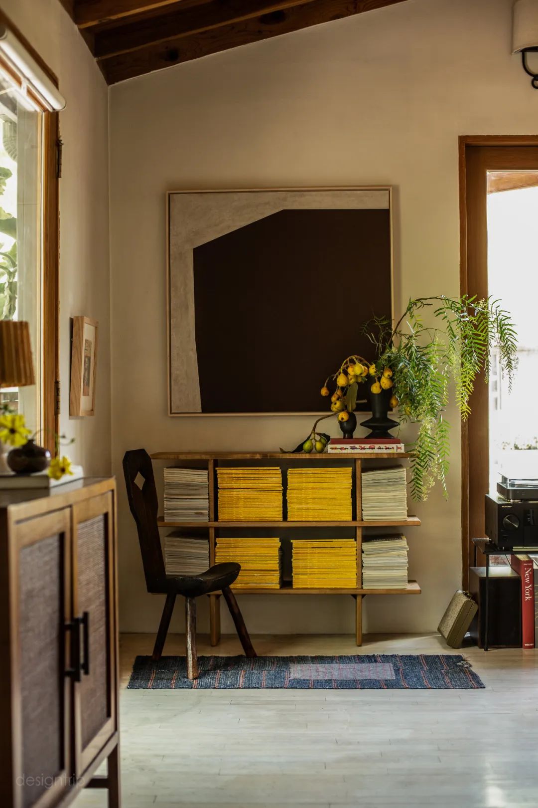 除了來自日本的陳舊織品,Lauren的家里還充斥著各種不同材料的家具,如水磨石飾面的書桌、陳舊的書柜、簡約卻獨特的花瓶以及來自自然的折枝等等,它們因為材質(zhì)的不同而處于一屋,從不同的角度創(chuàng)造出了一個侘寂的美學空間。