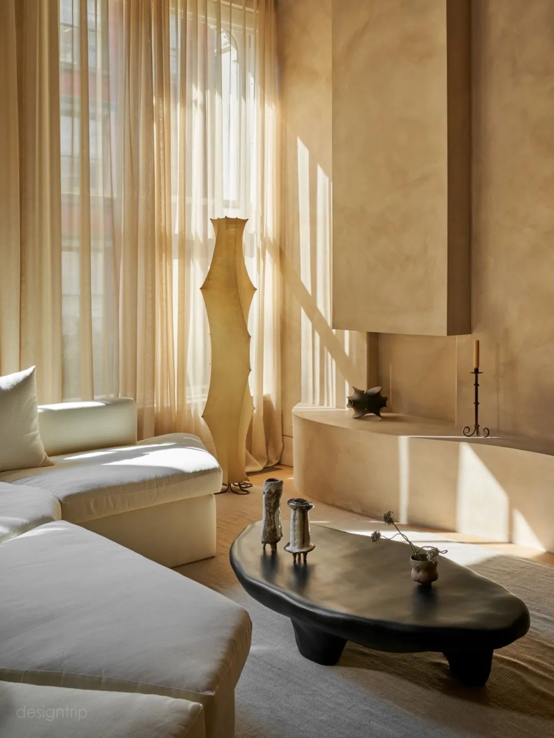 蘇豪區(qū)閣樓是Lauren為時裝設計師與時尚博主Danielle Berstein設計的住宅。Danielle 是Lauren的好友,二人對于侘寂的欣賞有著高度的統(tǒng)一性。在與Danielle的密切合作中,Lauren采用了侘寂的設計原則,將公寓包裹在溫暖、自然的色調(diào)和泥土紋理中,創(chuàng)造了一個遠離紐約城市喧囂的舒適的避難所。
