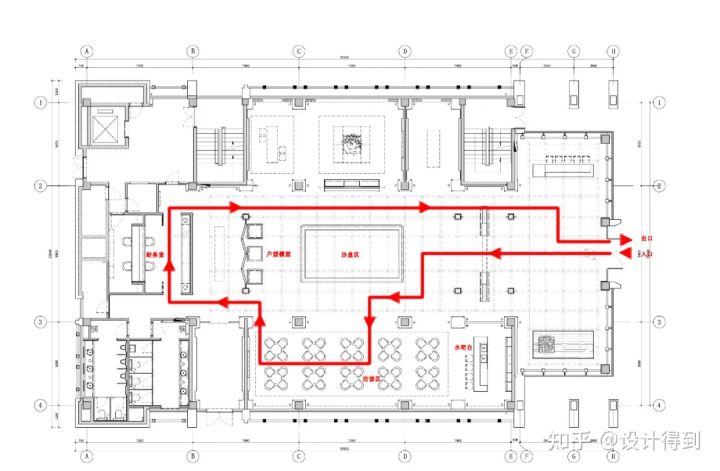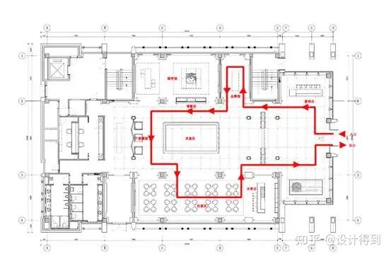 售樓處的動線設(shè)計考慮的是客人進(jìn)門所需要的服務(wù)順序。